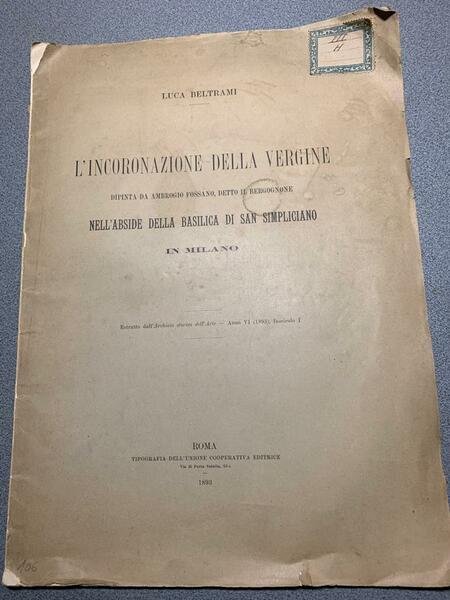 In 4° grande, broch. edit. stanca, pp 12 e 3 tavole in fototipia f.t. (due doppie).