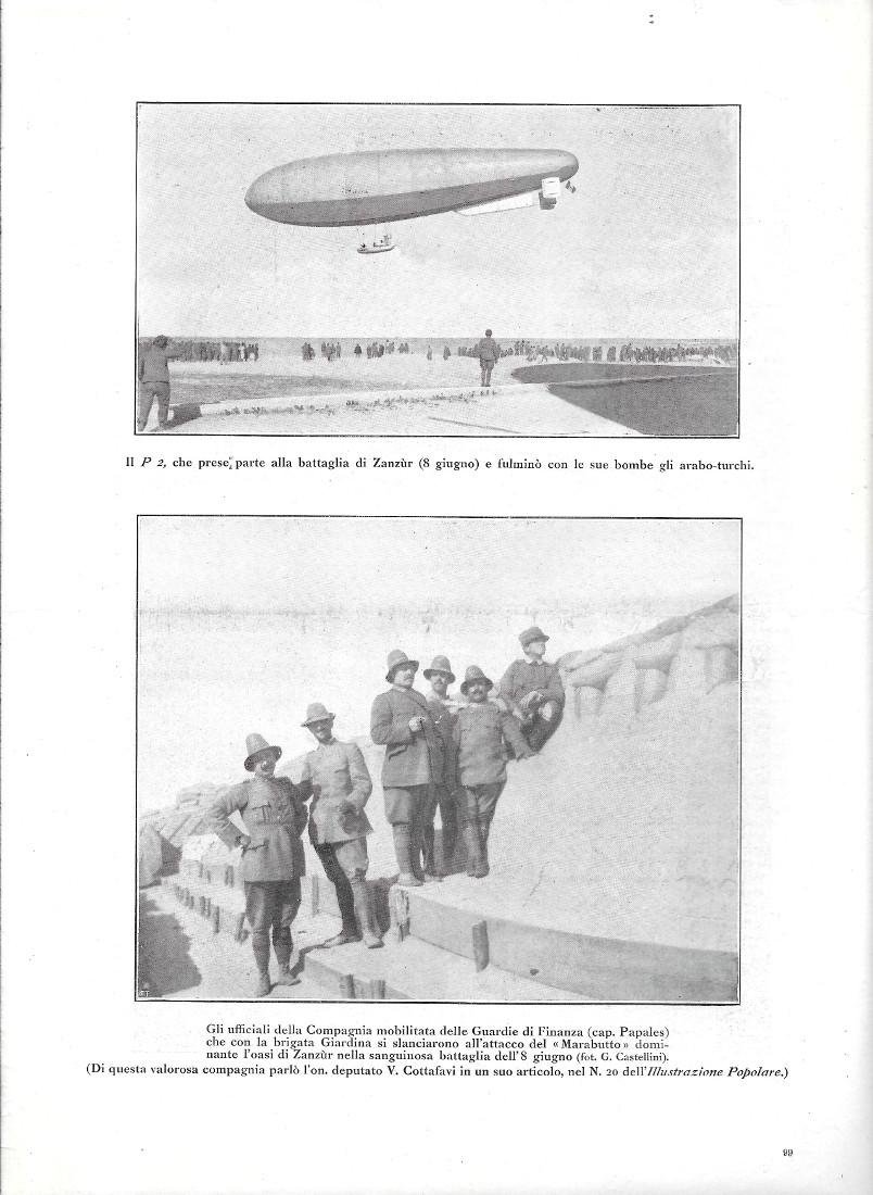 L'incrociatore San Giorgio / Dirigibile a Zanzur/ Finanzieri a Zanzur. Stampa 1912