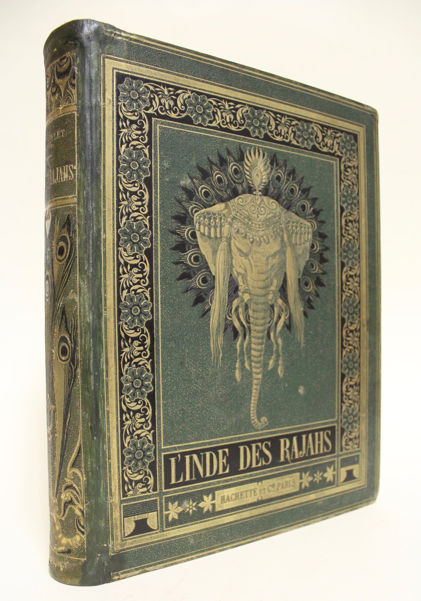 In 4° (mm 340x260); pagg. 807 con 317 inc. su legno nel testo di vedute, monumenti, paesaggi, costumi della società Indiana e 6 carte geografiche. Tela editoriale decorata con impressioni policrome ed a secco, tagli in oro. Resoconto di un viaggio iniziato nel 1863 a Bombay e durato sei anni attraversando il Konkan, il Dekkan, Baroda, il Guzerate, Udeupur, Rajaputan ecc. L'autore, fotografo francese, realizzò più di seicento fotografie, da cui furono tratte le stampe. Buon esemplare con qualche fioritura ma ben conservato. Legatura con dorso usurato, staccato dal corpo del libro, spigoli usurati, cerniere allentate, primo fascicolo allentato
