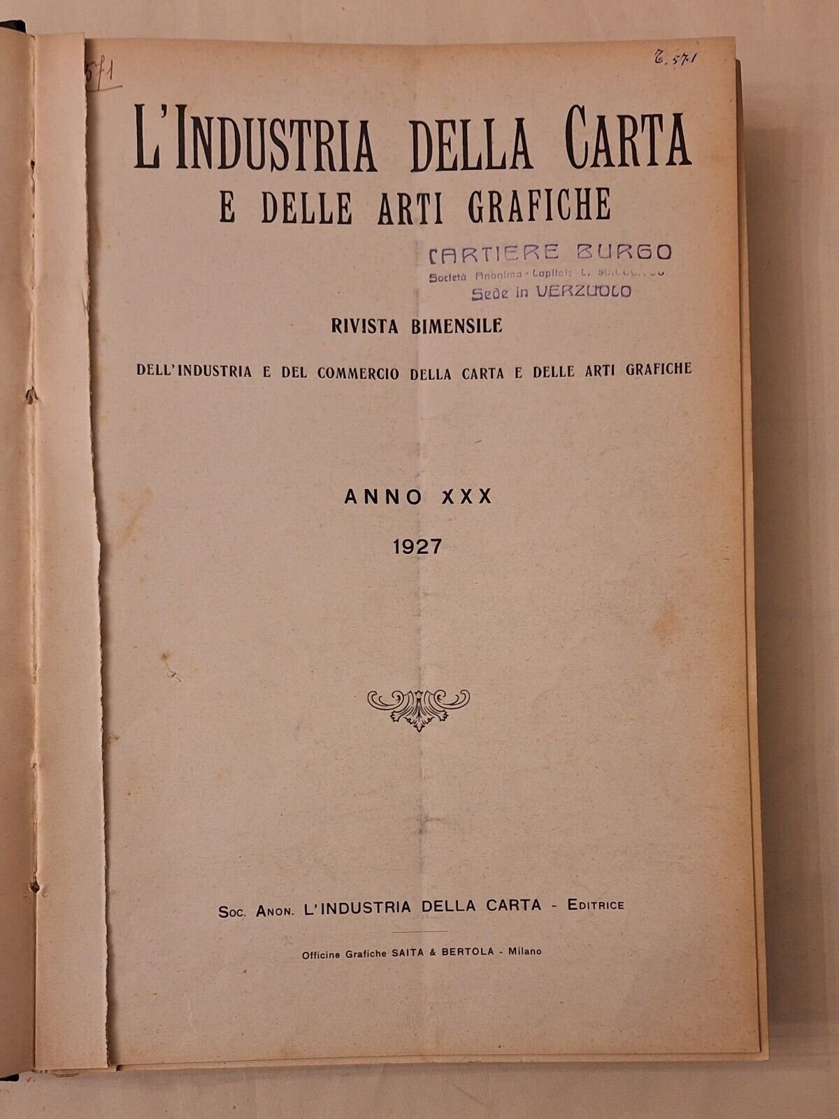 L'INDUSTRIA DELLA CARTA E DELLE ARTI GRAFICHE RIVISTA BIMESTRALE ANNATA 1927