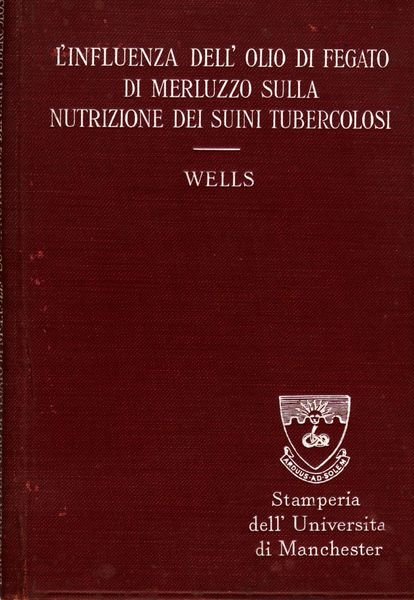 L'INFLUENZA DELL'OLIO DI FEGATO DI MERLUZZO SULLA NUTRIZIONE DEI SUINI TUBERCOLOSI edizioni STAMPERIA DELL'UNIVERSITA' DI MANCHESTER 1907. RILEGATO IN TELA e titoli al dorso, PP 84, con cartina ripiegata in apertura di libro, e scheda originale dell'Università del libro dato come regalo. (Manuali) BUONO stato