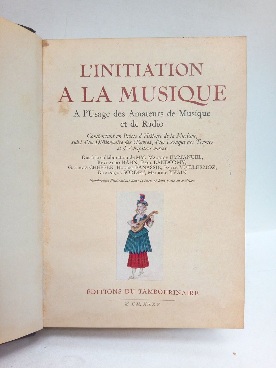 L'Initiation a la Musique. A l'Usage des Amateurs de Musique et de Radio: Comportant un Précis d'Histoire de la Musique, suivi d'un Dictionnaire des Oeuvres, d'un Lexique des Termes et de Chapitres variés / Dus à la collaboration de MM. Maurice Ammanuel, Reynaldo Hahn; Paul Landormy, Georges Chepfer, Hugues Panassié, Emile Vuillermoz, Dominique Sordet, Maurice Yvain. Nombreuses illustrations dans le texte et hors-texte en coleurs