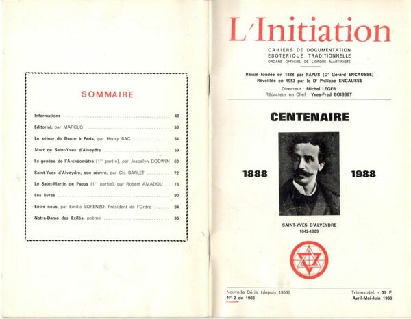 L'Initiation. Cahiers de documentation esoterique traditionnelle. Nouvelle série, n° 2 (Avril-Mai-Juin 1988), Centenaire