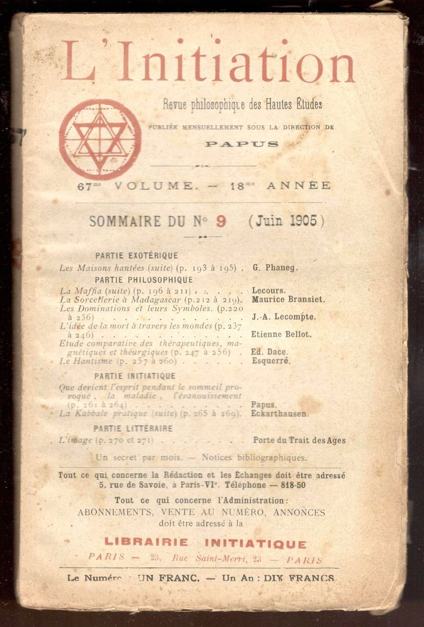 L'Initiation. Revue philosophique des Hautes Études. Publiée mensuellement sous la direction de Papus. 67me volume. 18me année. N. 9 (Juin 1905)