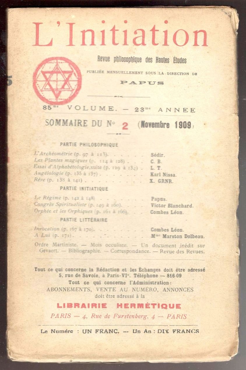 L'Initiation. Revue philosophique des Hautes Études. Publiée mensuellement sous la direction de Papus. 85me volume. 23me année. N. 2 (Novembre 1909)