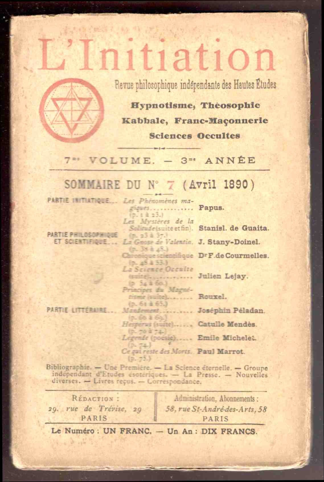 L'Initiation. Revue philosophique indépendante des Hautes Etudes. Hypnotisme, Théosophie, Kabbale, Franc-Maçonnerie, Sciences occultes. 7e volume. 3me année. N. 7 (Avril 1890)