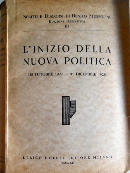 L'INIZIO DELLA NUOVA POLITICA (28 OTTOBRE 1922-31 DICEMBRE 1923). SCRITTI E DISCORSI DI BENITO MUSSOLINI. VOLUME III, EDIZIONE DEFINITIVA