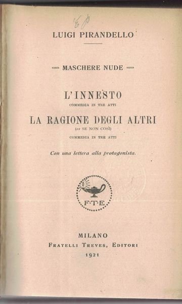 Luigi Pirandello, L'innesto. Commedia in tre atti- La ragione degli altri. Commedia in tre atti. Con lettera alla protagonista. Maschere Nude