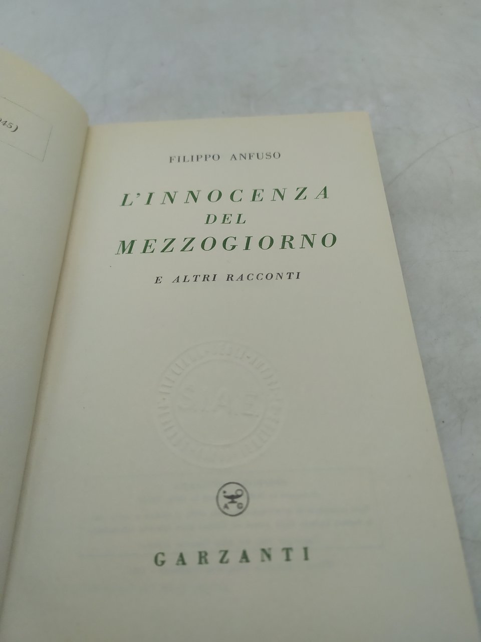 l'innocenza del mezzogiorno garzanti il delfino 1951. , [garzanti] 1951 italiano, pp.170 ^