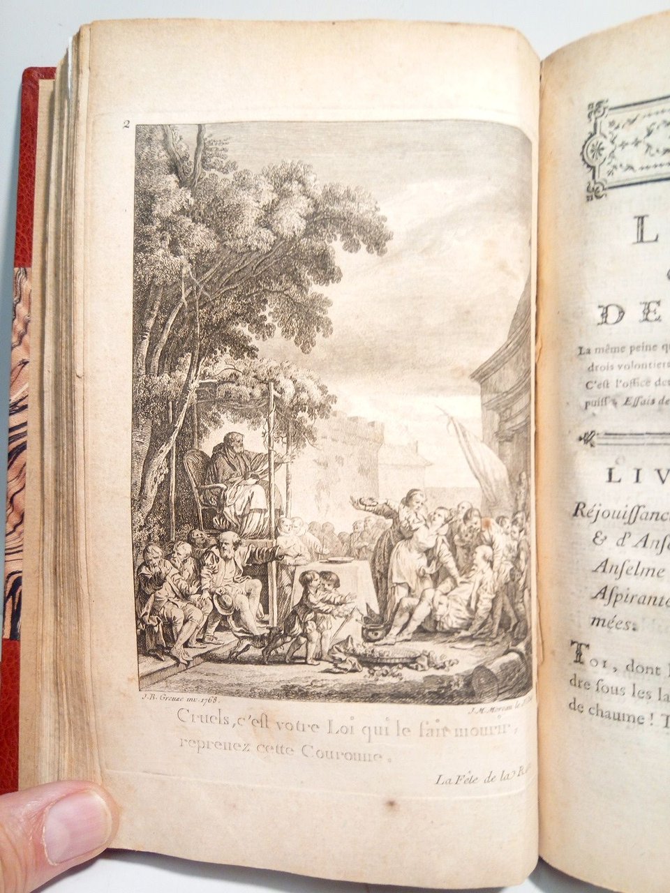 Nouvelle Edition considérablement augmentée.- A Paris: Chez Ruault, Libraire, 1778. Avez Approbation et Privilége du Roi.- [2 h.], 276 p.: Frontispicio a toda plana grabado al cobre, mas otros dos grabados al cobre a toda plana y tres grabados al cobre en la cabeza de cada capítulo; 4º menor (20,5 x 13,1 cm); Texto en francés; Finamente encuadernado en Media Piel chagrén a puntas, lomo dorado, dos tejuelos.- RARO.* Ejemplar con leves signos de humedad y algunas dispersas motas de oxidación. La hoja correspondiente a las pags. 83-84 tiene una mancha antigua de tinta en su esquina superior externa, que ha desintegrado parcialmente el papel, pero ha sido reforzada. Por lo demás en muy aceptable estado, con una encuadernación excelente. Aunque en el libro no figura nombre del autor, sabemos que es Edme-Louis Billardon de Sauvigny, literato y dramaturgo francés. Nació cerca de La Rochelle hacia el 15 de marzo de 1738 y muerto en París el 19 de abril de 1821. LITERATURA Y ESTUDIOS LITERARIOS EXTRANJEROS DE LOS SIGLOS XVI-XXI