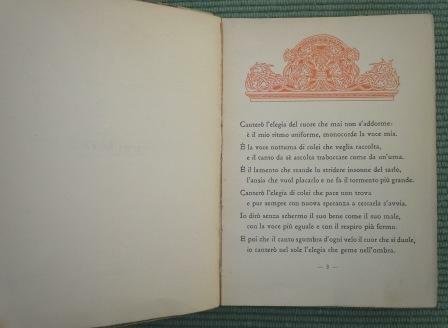 Volume rilegato mz pergamena con angoli, piatti marmorizzati, in 16°, pp. 187. Una testatina e un finalino in rosso. Titolo al frontespizio e capitoli in rosso. Tassello al dorso con autore e titolo con piccole mancanze, due taglietti al dorso. Interno molto buono.