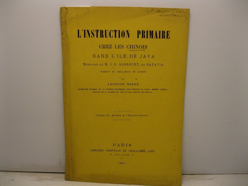 L'instruction primaire chez les Chinois dans l'ile de Java. Memoire de M. J. E. Albrecht de Batavia traduit du hollandais et annote'. Extrait des Annales de l'Extreme-Orient