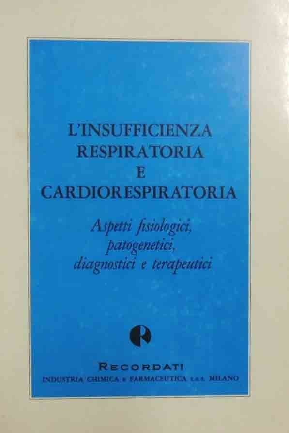 L’insufficienza respiratoria e cardiorespiratoria. Aspetti fisiologici, patogenetici, diagnostici e terapeutici, a cura dell’Ufficio Stampa scientifica della Recordati Industria Chimica e Farmaceutica s.a.s. – Milano, s.n. (ma Recordati Industria Chimica e Farmaceutica s.a.s. - Milano), s.l. (ma stampato a Milano, presso la Crespi e Occhipinti) 1968, pp. 136, ill. b.n. e col., 3 c. di tavv. ripiegate ill. b.n. e col., cm 24, br. ed. Lievi tracce d’uso alla brossura, minime fioriture ai tagli, per il resto buona copia.