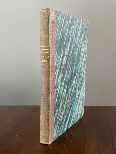 In-16° (cm. 17,3), legatura coeva in mezza tela con titolo in oro al dorso; pp. 190 in buono stato (leggere gore al margine superiore e qualche sporadica fioritura). Seconda edizione francese (la prima fu impressa a Parigi direttamente in francese) di quest'importante libro del Cattaneo. «L'opera fu tradotta e più volte ristampata in italiano» [Predari 131]. Cat. Hoepli,1413. Buon esemplare. (NH3)