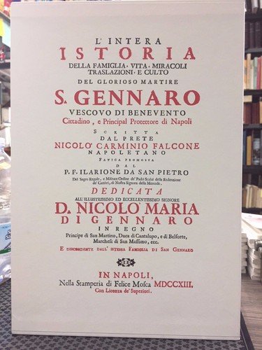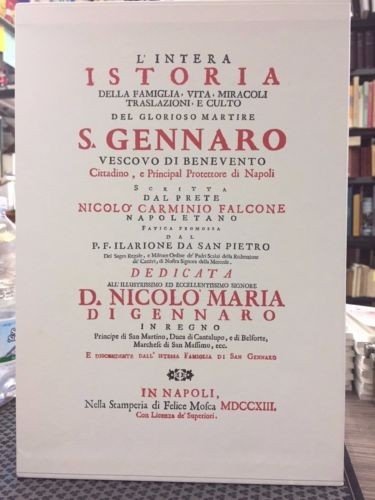 L'intera istoria della famiglia, vita, miracoli traslazioni e culto del glorioso martire. S. Gennaro