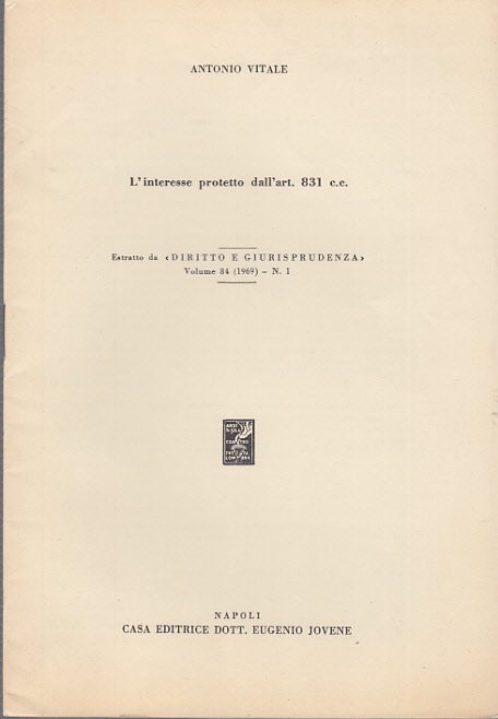 In-8 (Cm 24 x 17), pp. da 86 a 101, brossura editoriale. Estratto da "Diritto e Giurisprudenza". Dedica autografa dell'autore alla prima p. Lieve ingiallitura. MOLTO BUONO