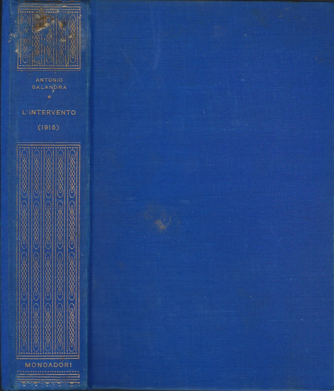 Legatura tutta tela blu con titoli e filetti in oro al dorso.