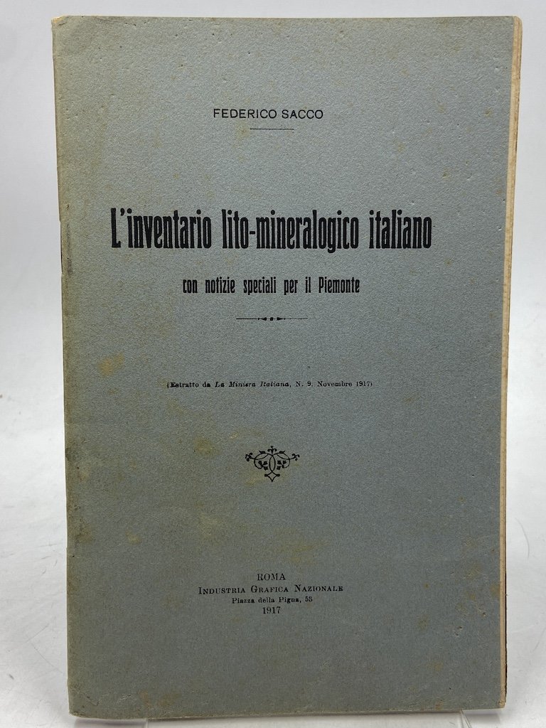 L’inventario lito-mineralogico italiano con notizie speciali per il Piemonte. (Estratto de La Miniera Italiana, N. 9, Novembre 1917).