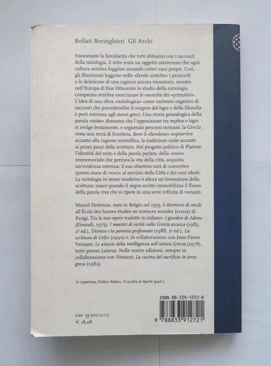 L'INVENZIONE DELLA MITOLOGIA di Marcel Detienne 2000 Bollati Boringhieri Libro