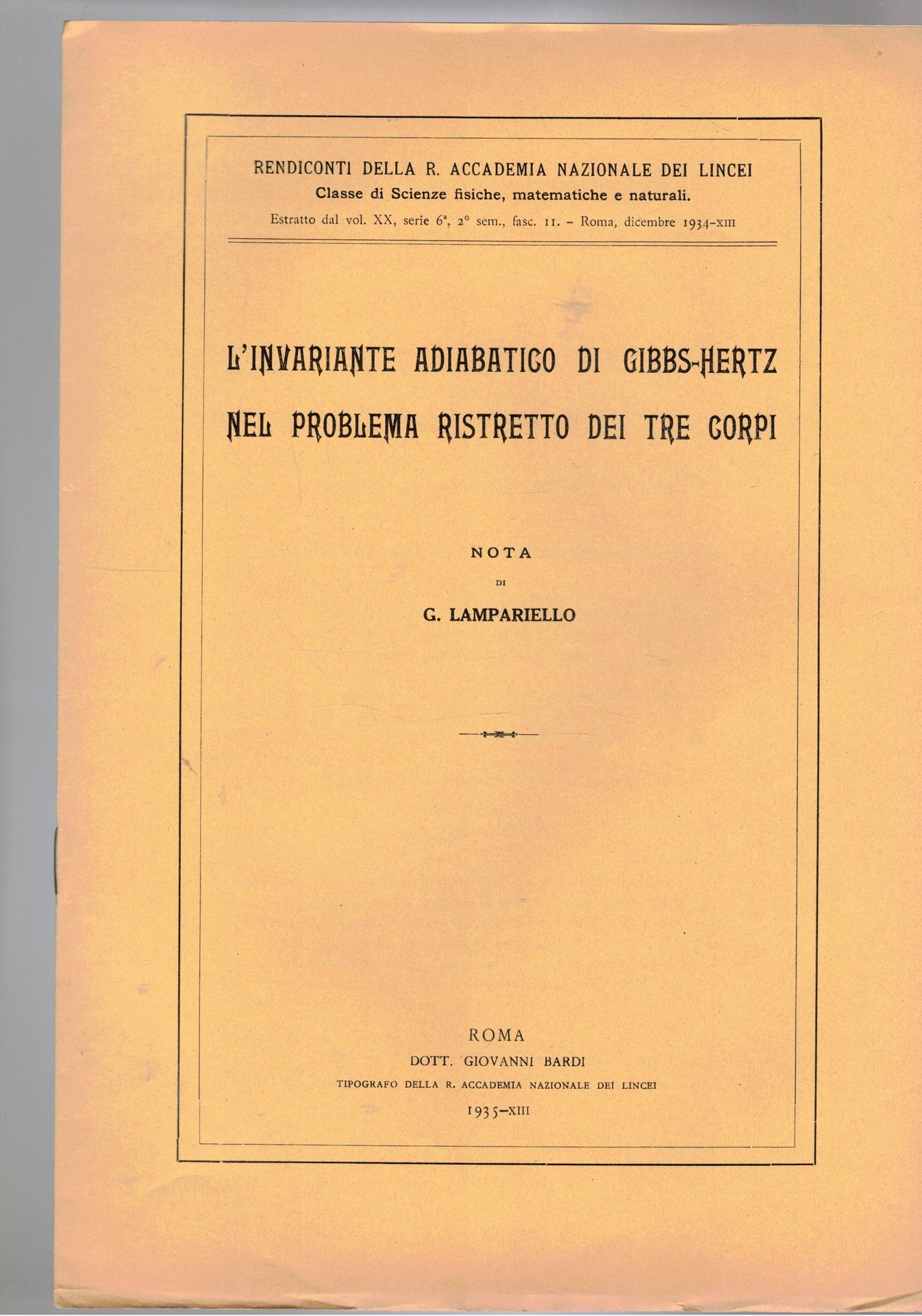 L'invriante adiabatico di Gibbs-Hertz nel probela ristretto dei tre corpi. Estratto.