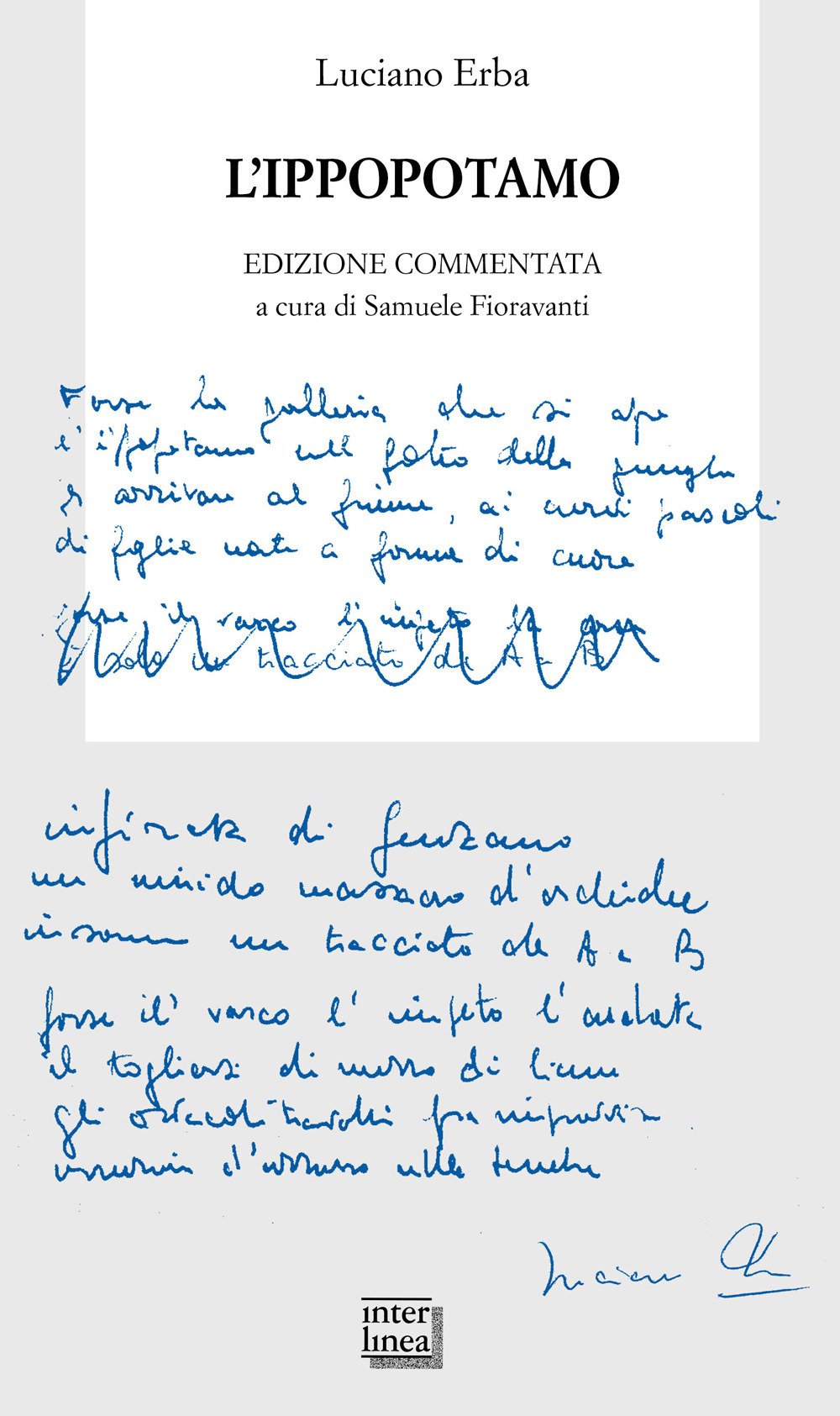 Nel centenario di Luciano Erba (1922-2010), poeta appartato eppure tra i più importanti del Novecento, è proposta un'edizione commentata dell'opera più celebre, L'ippopotamo (premio Librex-Guggenheim-Montale), perché «forse la galleria che si apre / l'ippopotamo nel folto della giungla / per arrivare al fiume, ai curvi pascoli» rappresenta l'emblema della ricerca umana, tra natura, attese e sogni. In questi testi Erba predilige una poesia di piccole cose quotidiane per parlare dei grandi interrogativi dell'esistenza e della vita civile, nel dubbio (metafisico e aperto alla speranza) che «forse questo e qualsiasi tracciato… / altro non sono / che eventi privi d'ombra e di riflesso / soltanto un segno che segna se stesso».