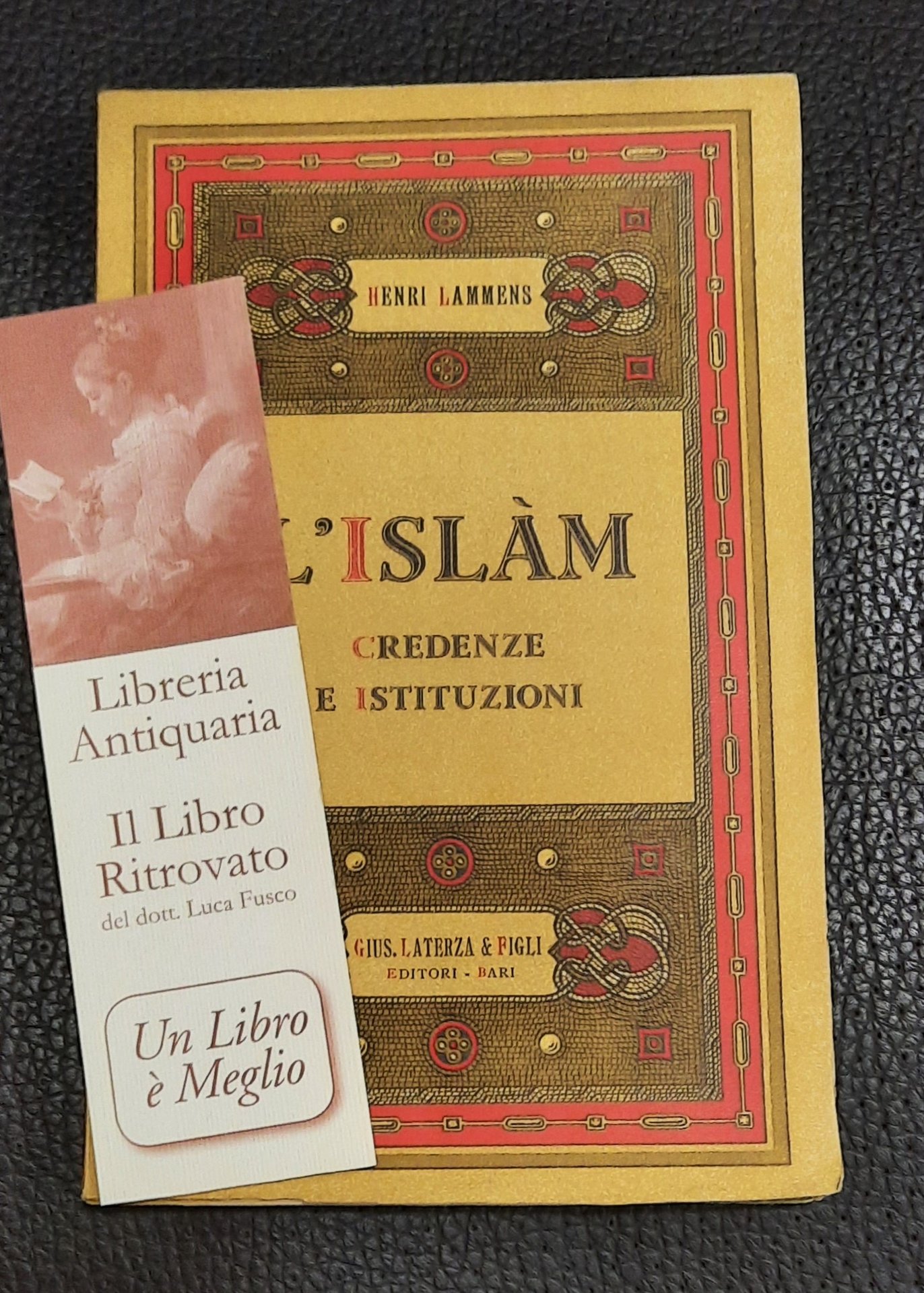 Nuova versione italiana. Bari-Laterza, 1948 in 8° pp. VIII, 199. Dall'indice: I beduini; Lingua e poesia araba; Sito della Mecca; La Kaba; Ebrei e cristiani; Assenza di idoli; Il Corano (autenticità, forma attuale, Sure); La "Sunna"; La giurisprudenza; Le sette; Il Bahismo. Brossura edit. ill. a colori. Collana "Studi religiosi ed esoterici". Perfette condizioni.