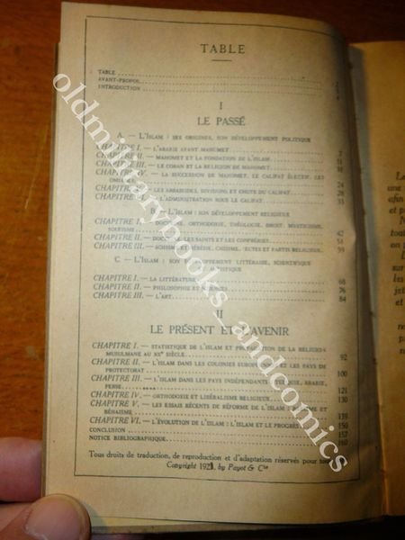 DESCRIZIONE: Paynot 1923 br. ed. ca. pp. 160 in 16°. Il vol. scritto in FRANCESE tratta dell'Islam nei suoi vari aspetti. CONDIZIONI: Ottime, potete controllare da voi nelle foto a fine inserzione, con l'indice del volume. PESO / WEIGHT: 130 gr. without package