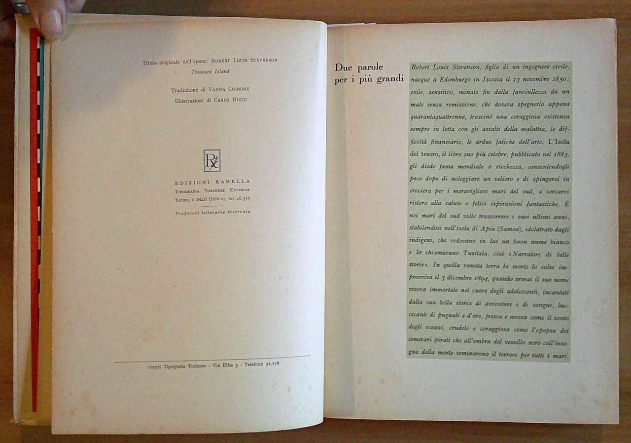 L'ISOLA DEL TESORO - ill. NICCO - Coll. Classici per Ragazzi, 1952
