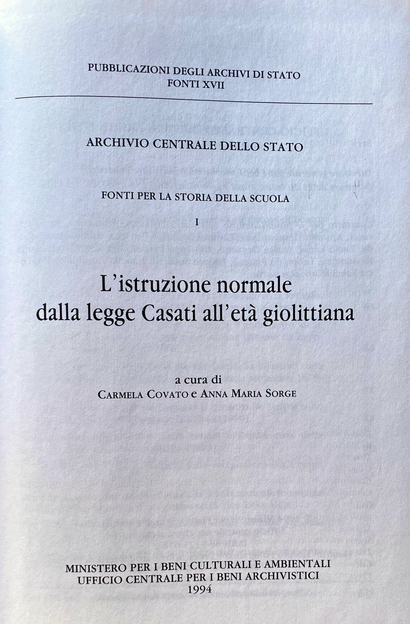 Titolo: L'istruzione normale dalla legge Casati all'età giolittiana