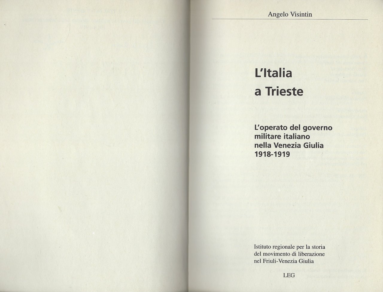 L'Italia a Trieste L'operato del governo militare italiano nella Venezia-Giulia 1918-19
