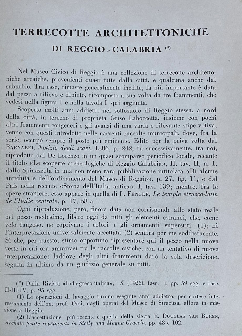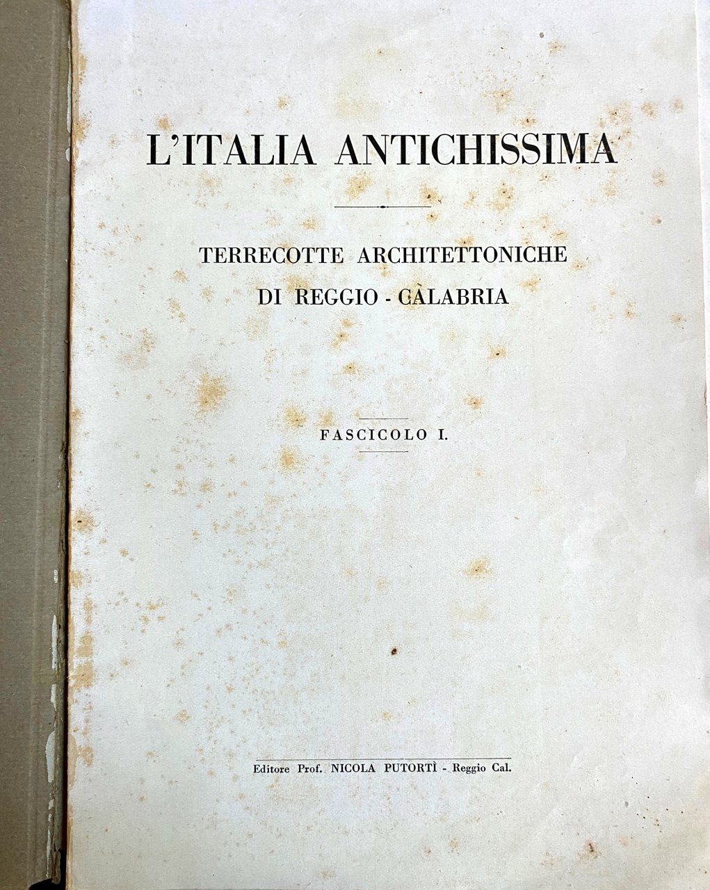 L'ITALIA ANTICHISSIMA. TERRECOTTE ARCHITETTONICHE DI REGGIO-CALABRIA. FASCICOLO I