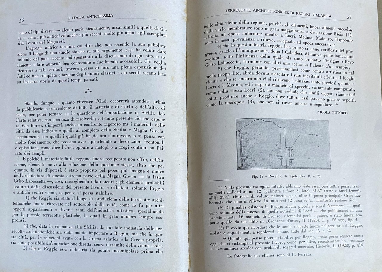 - Collezionismo, Archeologia, Italia meridionale, Calabria, Cultura, Scavi archeologici, Reperti, Terrecotte, Terracotta, Ceramiche, Libri antichi, Libri illustrati, Libri rari, Da collezione Arte antica, Iscrizioni, Anni Venti, Anni Trenta, Novecento, Pubblicazioni specialistiche, Vasi, Vasellame, Muesi, Bronzi, Storia, Antichità, Antiquariato, Scoperte archeologiche, Epigrafia