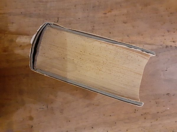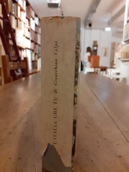 La sovracoperta risulta strappata sul dorso, alcune macchie di umidità sul taglio superiore delle pagine. Interni un poco ingialliti dal tempo.