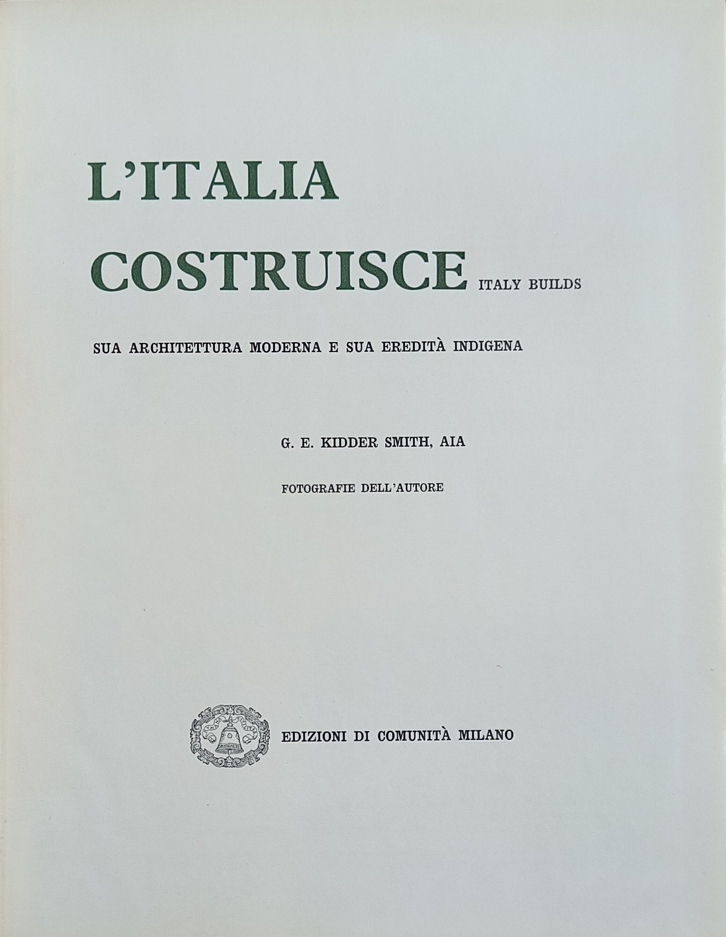 Kidder Smith, L'italia costruisce. Italy builds. Sua architettura moderna e sua eredità indigena, Milano, Edizioni comunità Milano, 1955