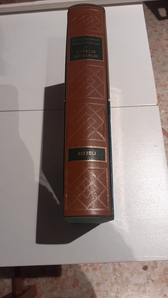 Volume in ottime condizioni de L'Italia dei comuni di Montanelli e Gervaso. Rilegatura rigida in pelle con cofanetto in cartoncino, edizione con illustrazioni a colori.