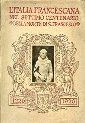 In-8°, pp. (6), 388, (4), brossura editoriale con titolo in rosso e illustrazione applicata raffigurante Francesco entro bordura monocroma impressa in rosso con due angeli vestiti col saio francescano che sorreggono un serto all'interno del quale sono inscritte le parole Religione, Arte, Umanità. Una tavola a colori f.t. e 120 illustrazioni fotografiche e disegni n.t., testatine e capilettera riccamente ornati e figurati. In barbe, in bello stato. Pubblicazione collettanea celebrativa dei 700 anni dalla morte del Poverello di Assisi, con scritti di vari autori (Misciattelli, Mastrangeli, Oliger, Rosati, Gioia, ecc.) su Francesco e sulla storia della propagazione del francescanesimo nelle varie regioni italiane. Precedono l'enciclica di Pio XI per tale celebrazione ed un messaggio di Mussolini per il Centenario Francescano.