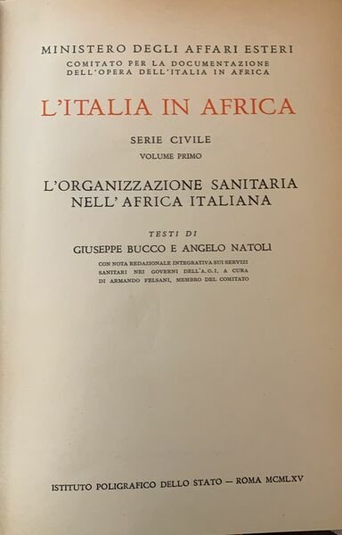L'Italia in Africa. Serie civile volume primo L'organizzazione sanitaria nell'Africa Italiana. Testi di Giuseppe Bucco e Angelo Natoli