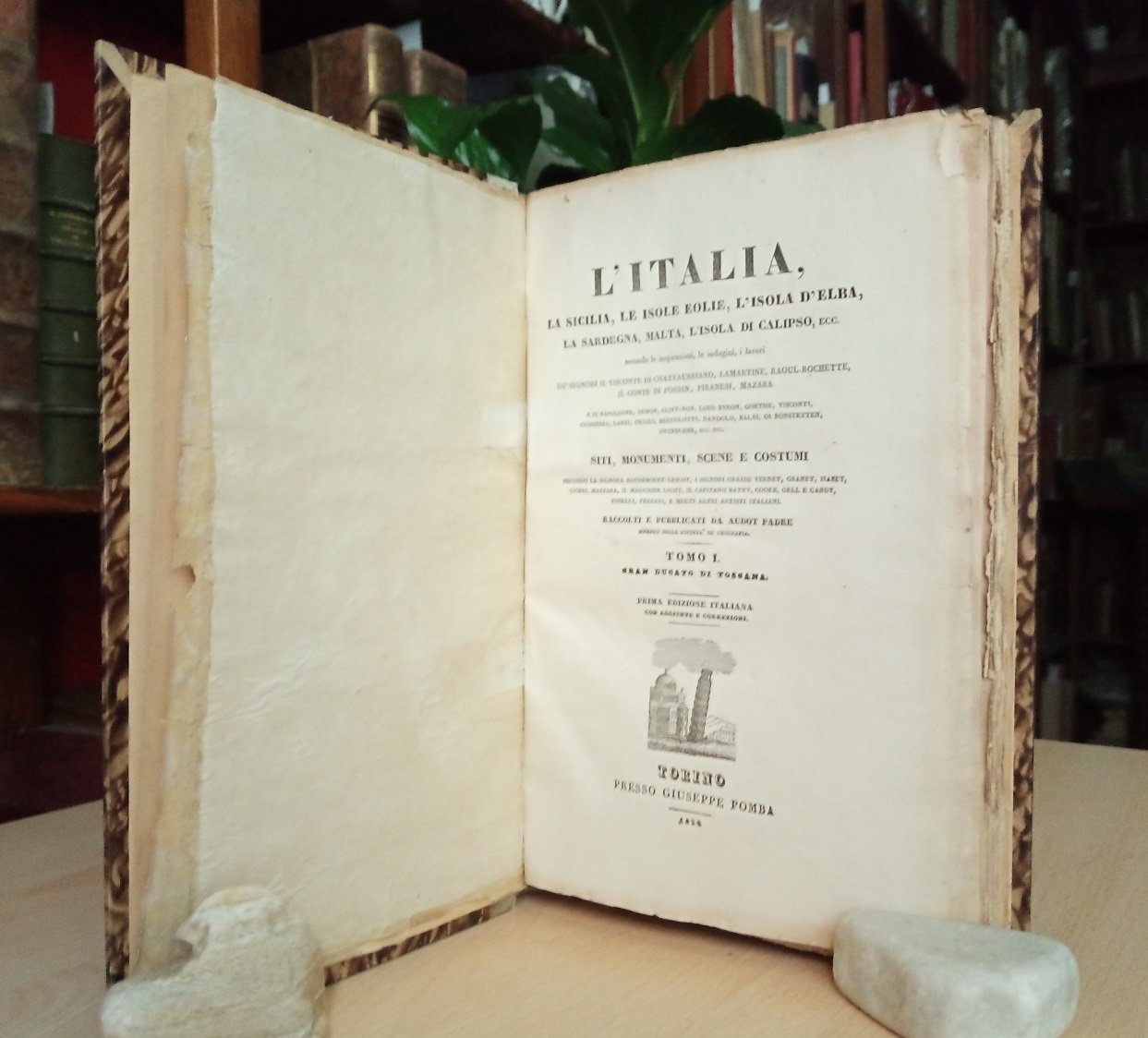 L'ITALIA, LA SICILIA, LE ISOLE EOLIE, L'ISOLA D'ELBA, LA SARDEGNA, MALTA, L'ISOLA DI CALIPSO ECC. secondo le inspirazioni, le indagini, i lavori dei Signori. SITI, MONUMENTI, SCENE E COSTUMI . raccolti e pubblicati da Audot Padre. Prima edizione italiana . Volume I: GRAN DUCATO DI TOSCANA.