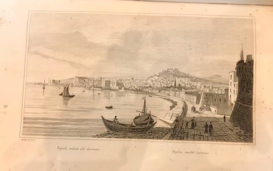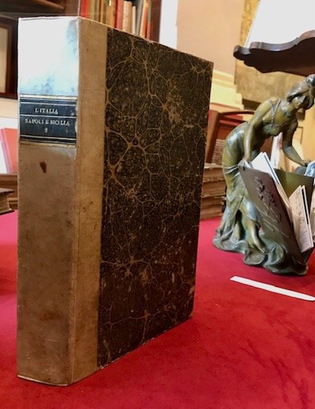4to (cm. 27,3), 374 pp (di 376, assente un primo frontespizio). Con 94 tavv. incise su acciaio f.t. (di cui alcune contenenti anche due o più vedute) Legatura coeva in mz. pergamena con titolo oro su tassello in pelle al ds. (staccata). Fioriture sparse, altrimenti esemplare in ottimo stato di conservazione. Prima edizione italiana. Secondo volume riguardante il Regno di Napoli, la Sicilia e Malta.
