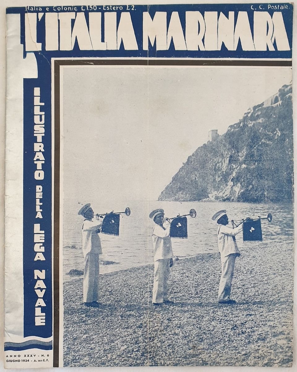 Numero del giugno 1934 della rivista "L'Italia marinara" illustrato dalla Lega Navale diretto da Achille Starace. All'interno: Ipotesi e realtà nella preparazione alla guerra: Marina e Aviazione, I servizi marittimi internazionali dell'Italia, Il portolano del Mare Nostrum, Dal Plata all'Orinoco, Leone e Filippo Strozzi, Laguna della Venezia Giulia, Trafalgar, Alberto Beniscelli un pittore del mare, I progressi della tecnica navale, Il progetto di un canale del Nicaragua, Il traffico sul Tevere, Yatching, motonautica, canottaggio, 140 pescatori del golfo di Napoli partiti per l'Urbe eccc. Alcune foto d'epoca. Bella copertina illustrata. In buone condizioni. Copertina editoriale in buone condizioni con lievi usure e mancanze ai margini e dorso. Legatura in buone condizioni. Pagine in buone condizioni con rare fioriture. Piegatura verticale. In 4. cm 29x23. Pp. da 203 a 242Number of june 1934 of the magazine "L'Italia marinara" illustrated by Lega Navale directed by Achille Starace. Inside: Hypothesis and reality in the preparation to war: Marine and Aviation, International Sea Services of Italy, portolano of Mare Nostrum, From Plata to Orinoco, Leone and Filippo Strozzi, Laguna of Venezia Giulia, Trafalgar, Alberto Beniscelli a painter of the sea, progreses of naval technique, project of a channel of Nicaragua, traffic on Tevere, Yatching, motonautica, canottaggio, 140 fishers of Naple Gulf left to Urbe etc. Some photos. Beautiful illustrated cover. In good conditions. Editorial cover in good conditions lightly worn with losses in the extremities. Binding in good conditions. Inside pages are in good conditions with occasional foxings. Vertical foldings. In 4. cm 29x23. Pp. from 203 to 242
