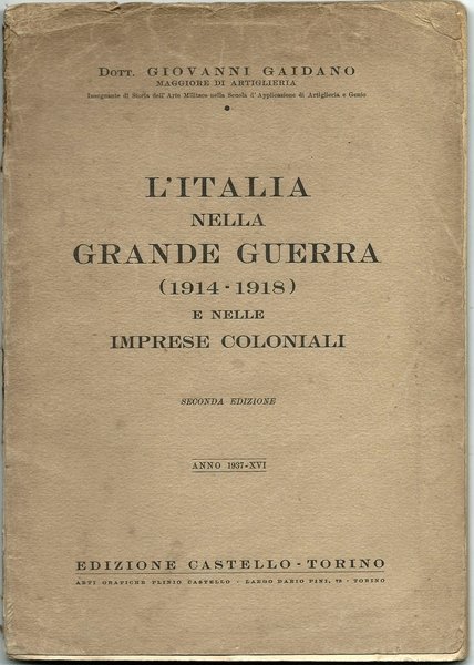 L'ITALIA NELLA GRANDE GUERRA (1914 - 1918) E NELLE IMPRESE COLONIALI. TORINO ED. CASTELLO 1937