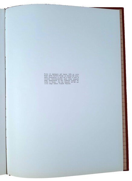 Un volume, 340x250 mm, leg. editoriale in tela con titolo su etichetta al dorso, sovracoperta in carta patinata con illustrazioni e titolo, custodia in cartone leggero con titolo su tassello al dorso; pp. 285; numerose illustrazioni. Rif.: IT\ICCU\SBL\0327586. OCLC, 1079387117. Ottimo esemplare.