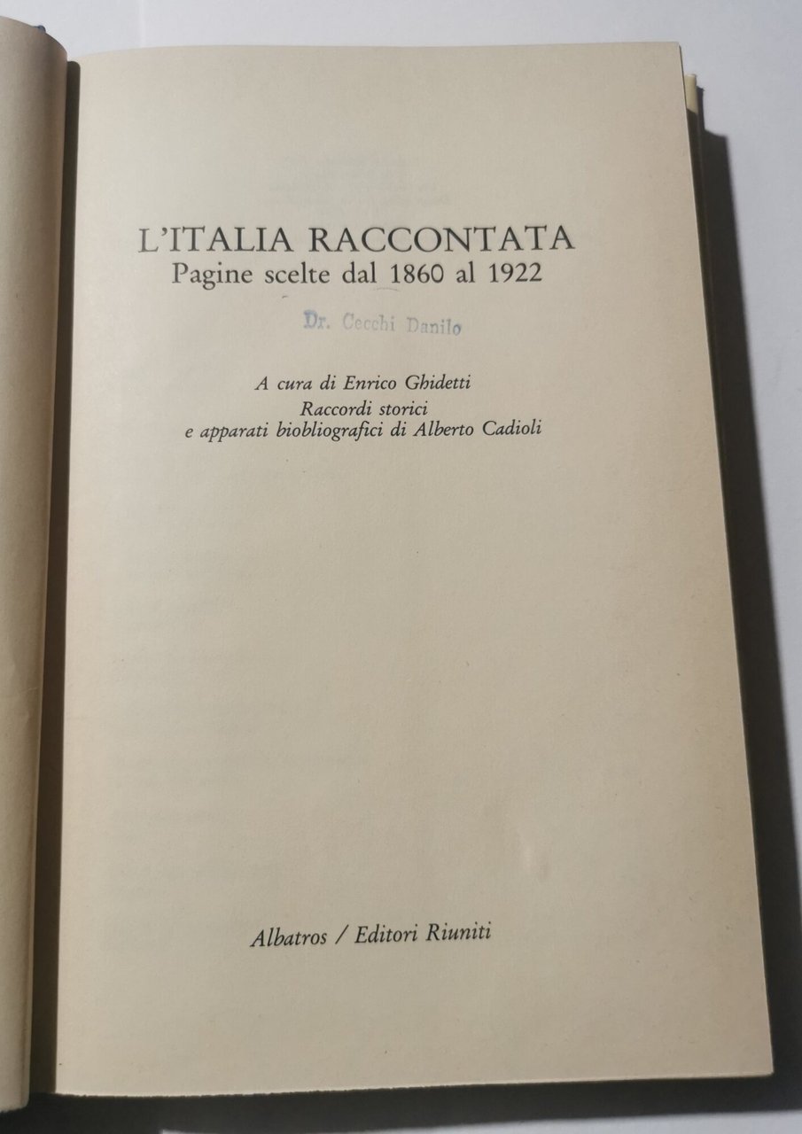 L'Italia raccontata - Pagine scelte dal 1860 al1922