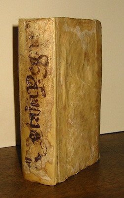 12mo (cm. 13,8), antiporta calcografica, 12 cc.nn., 552 pp. Legatura coeva in piena pergamena con grande titolo ms. in caratteri gotici al ds. (restauri). Ingialliture sparse, ma buon esemplare. La sola Parte quarta (ed ultima) dell’opera. Vinciana, 393.