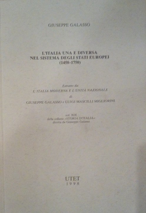 Estratto da: L'Italia Moderna e l'Unità Nazionale di G.Galasso e L.Miscilli Migliorini, in-8, br., pp.666, ottimo