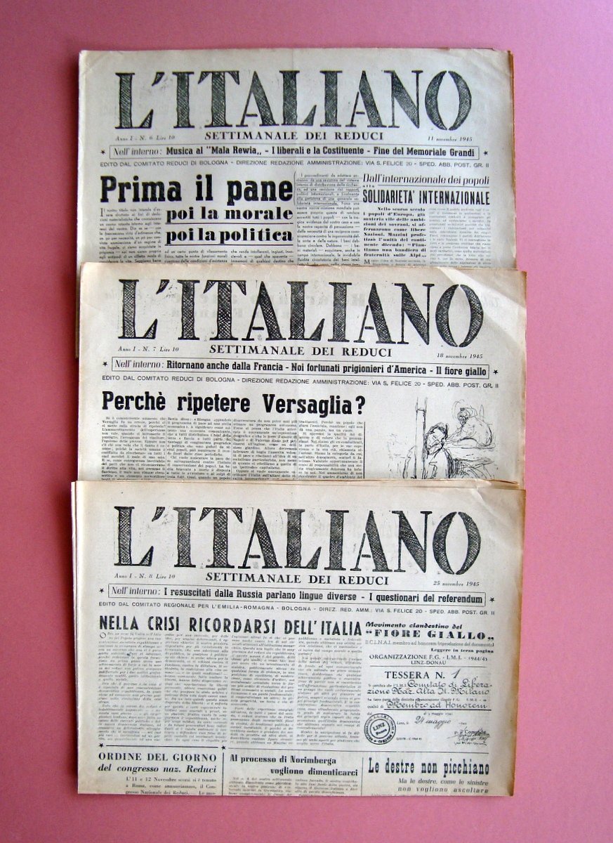 L'Italiano dei settimanale Reduci 3 numeri 6-7-8 1945 Anno I Bologna