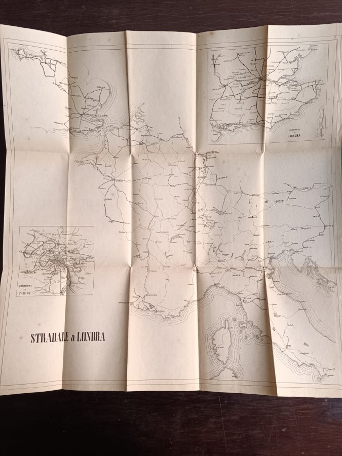 In-16° (cm. 17), genuina legatura editoriale in tutta tela viola con titolo in oro al piatto anteriore inquadrato da cornice a secco (dorso sbiadito con antico tassello applicato); pp. IX [3] 244 in stato molto buono (alcune bruniture e lievi fioriture); con 21 piante fuori testo e 4 carte geografiche più volte ripiegate sempre fuori testo, di cui una a colori in fine, un'altra con Ex libris nobiliare. Interessante e non comune guida con notizie storiche, corografiche ed economiche delle varie località e piani speciali per visitare Londra e Parigi pubblicata nella circostanza della Grande Esposizione. Buon esemplare. (NA2)
