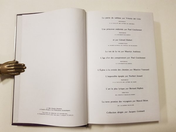 Prima edizione. Collection Ages d'Or et Réalités.<BR>In 8°; pp. 279 con molte illustrazioni b/n e colore (applicate) nel testo anche a piena pagina; legatura editoriale in tutta pelle con titolo e fregi in oro al dorso e ai piatti; copertina protettiva in acetato; cucito; capitelli e segnalibro; custodia in cartoncino muto.<BR>Con testi di V. Del Litto, P. Guichonnet, G. Hubert, M. Andrieux, M. Vaussard, N. Jonard, B. Rajben, M. Brion.<BR>CONDIZIONI OTTIME, assolutamente come nuovo. <BR>In lingua francese.<BR>
