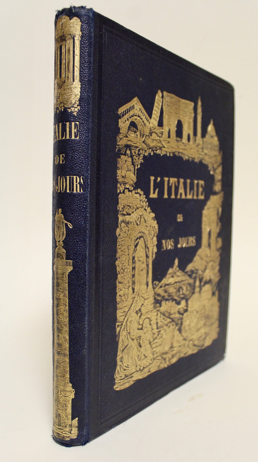 In 8° (mm 270x205), antiporta figurata, frontespizio con vignetta raffigurante Tivoli, pagg. (4), 204 con 28 tavole fuori testo in acciaio raffiguranti Nizza, Genova, Milano, pavia, Parma, Modena, Bologna, Fiesole, Pisa, Livorno, Roma, Perugia, Ancona, Ferrara, Padova, Venezia, Vicenza, Verona, Mantova, brescia, Garda, Lugano, Como. Bellissimo esemplare con legatura editoriale figurata in tela nera con impressioni e titolo in oro a piatti e dorso. <BR>