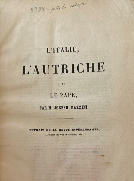 L'Italie, l'Autriche et le pape. Extrait de la revue Independante